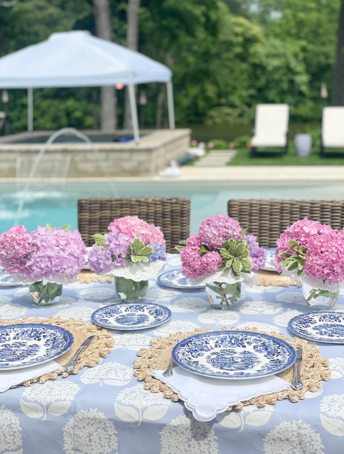 How pretty is this "Blue Hydrangeas" tablecloth that I painted entirely by hand? Click the button below to see tablecloths and table runners in the store.