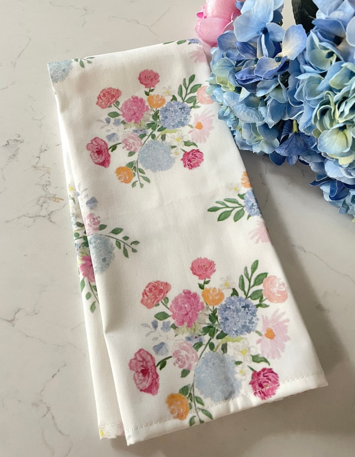 Antique Blue and White Ginger Jar with Green Hydrangeas Flour Sack Towel