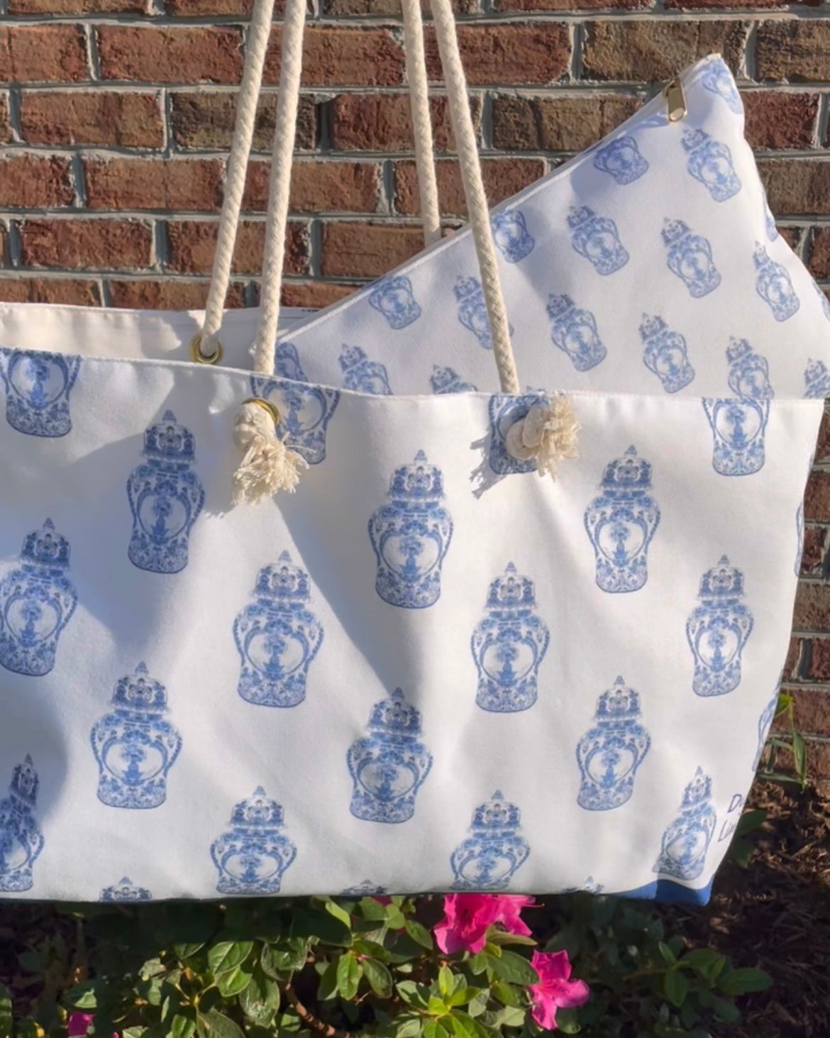 If you love chinoiserie and ginger jars, then this exclusive vintage inspired design weekender tote bag is for you. Use it for a weekend away, for the pool, beach or even groceries!The perfect casual day out accessory, this tote is sturdy, and the floral Ginger Jars design is elegant timeless and fun. It also makes a great gift!