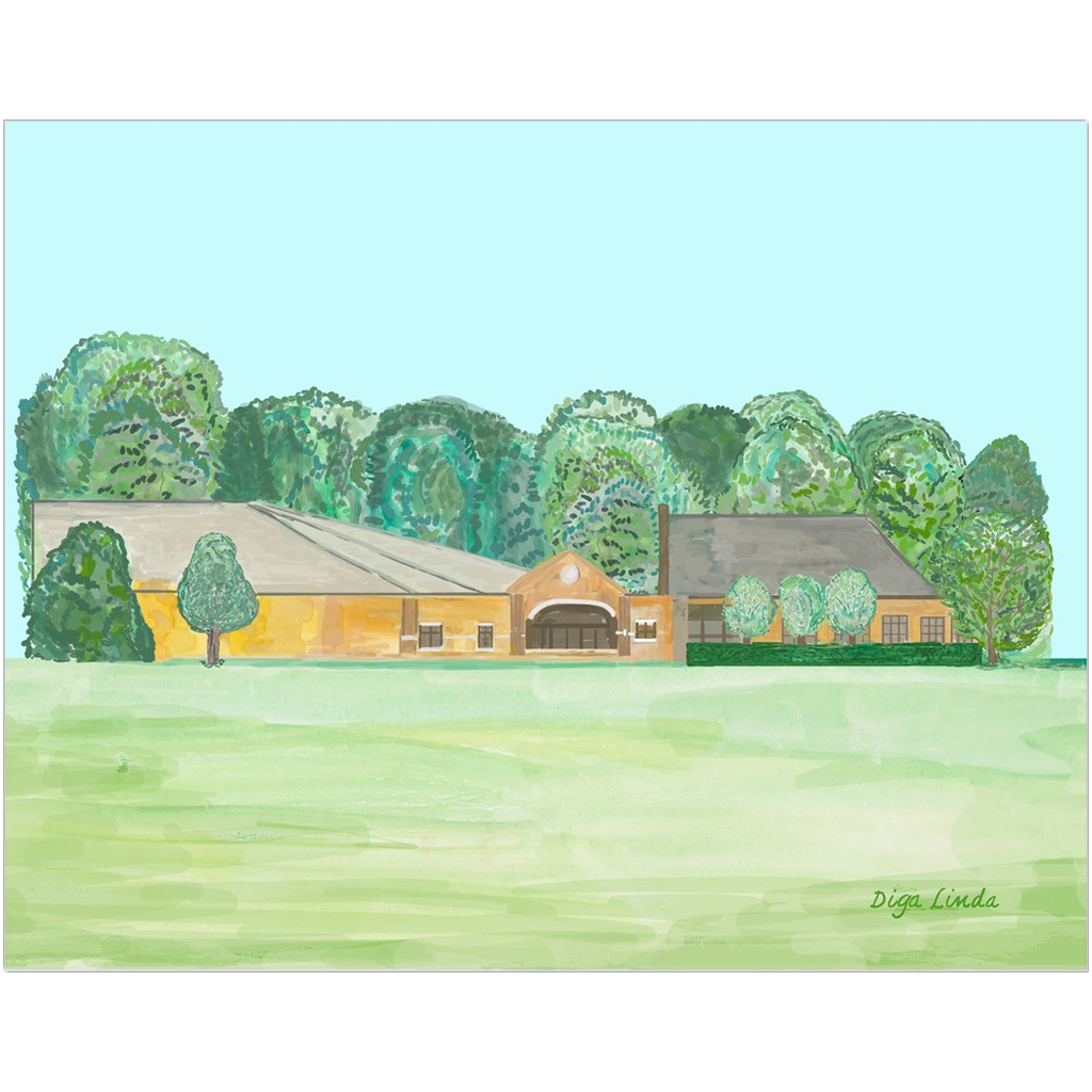 This exclusive fine art print has so much detail! After taking lots of pictures around the school and picking the right angle, I choose which designs to watercolor and illustrate. This building is very detailed and was designed with lots of love. It looks good on different kinds of frames and it makes the perfect gift.These designs and colors reflect the happiness and fun of Ceci's original watercolor and digital illustrations.