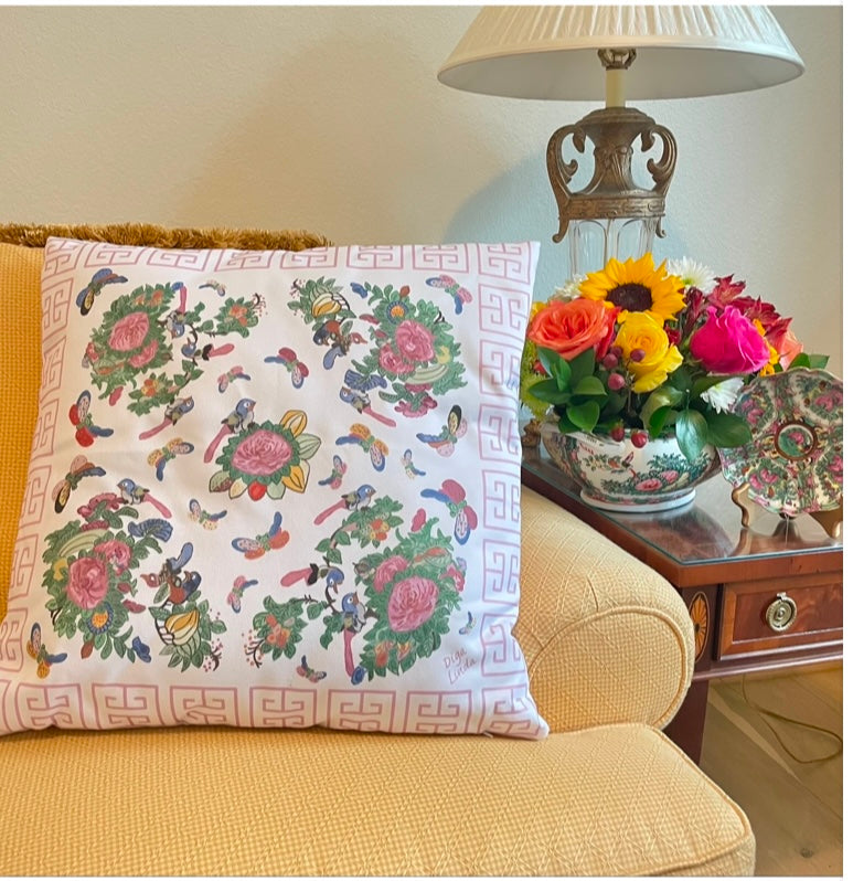 Famille Rose Antique Inspired Throw Pillows