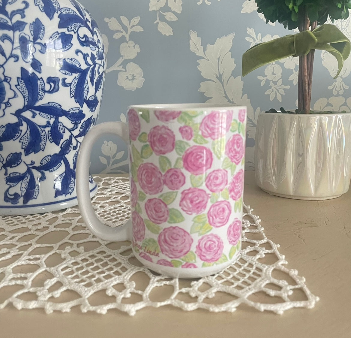 This is the perfect gift for friends, family or co-workers. It's also perfect to bring over to someone's house. These pretty flowers will last more than a week!  Same theme on the other side of the mug.