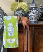 Kelly Green Blue and White Ginger Jars Tea Towels