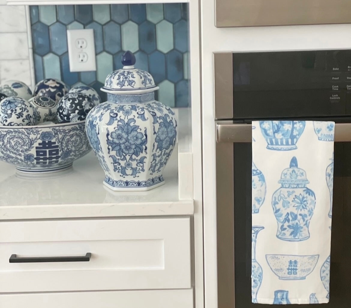 REVIEW - ★★★★★ - "I love the Chinoiserie tea towel. The artwork is true to the photo online and the material is super absorbent and the teal towel is oversized. It will be making drying dishes in my kitchen more stylish and easy for years to come." ~ Joanne F. 01/03/2022