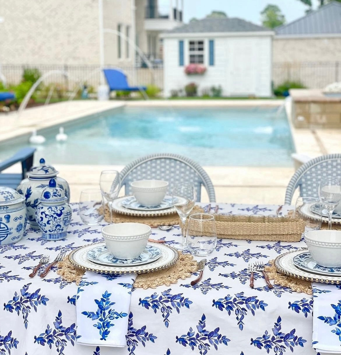 This print is inspired by the Vincentina Coast in the south west part of Portugal where it's majestic beaches and cliffs by the ocean, meet the country Cape of St.Vincent. If you love blue and white this tablecloth is for you! These designs and colors reflect the happiness and fun of Ceci's original watercolor and digital illustrations.