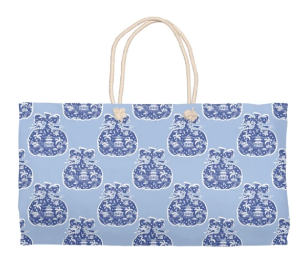 Is blue and white your favorite? This design has pumpkins, pagodas and bows, what could be better? It's time to decorate your bar cart for the fall with this essential wine carrier! This ultimate party accessory is made of 100% Neoprene material, soft grip and it fits (1) 750Ml wine bottle.