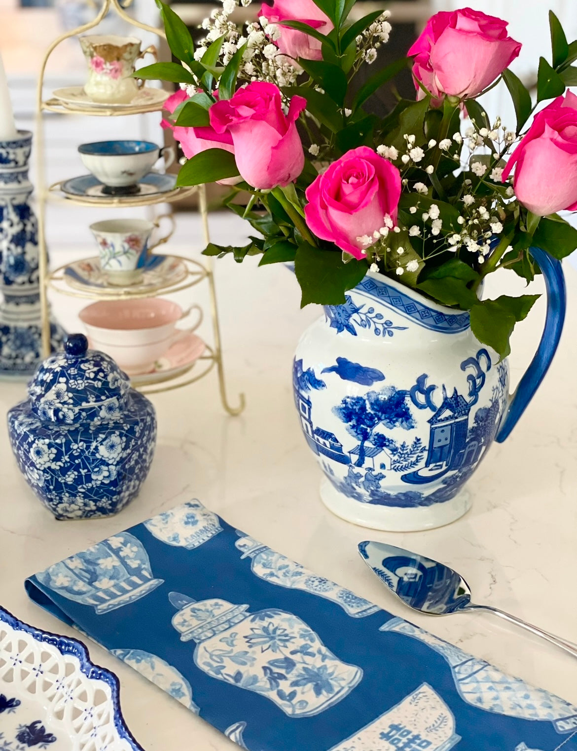 Porcelain Blue and White Ginger jars Tea Towels