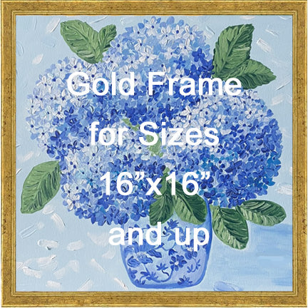 On these frames, you have the option to display them as a regular frame or hang it on the wall. Sizes 16"x16" and up come with a gold frame.